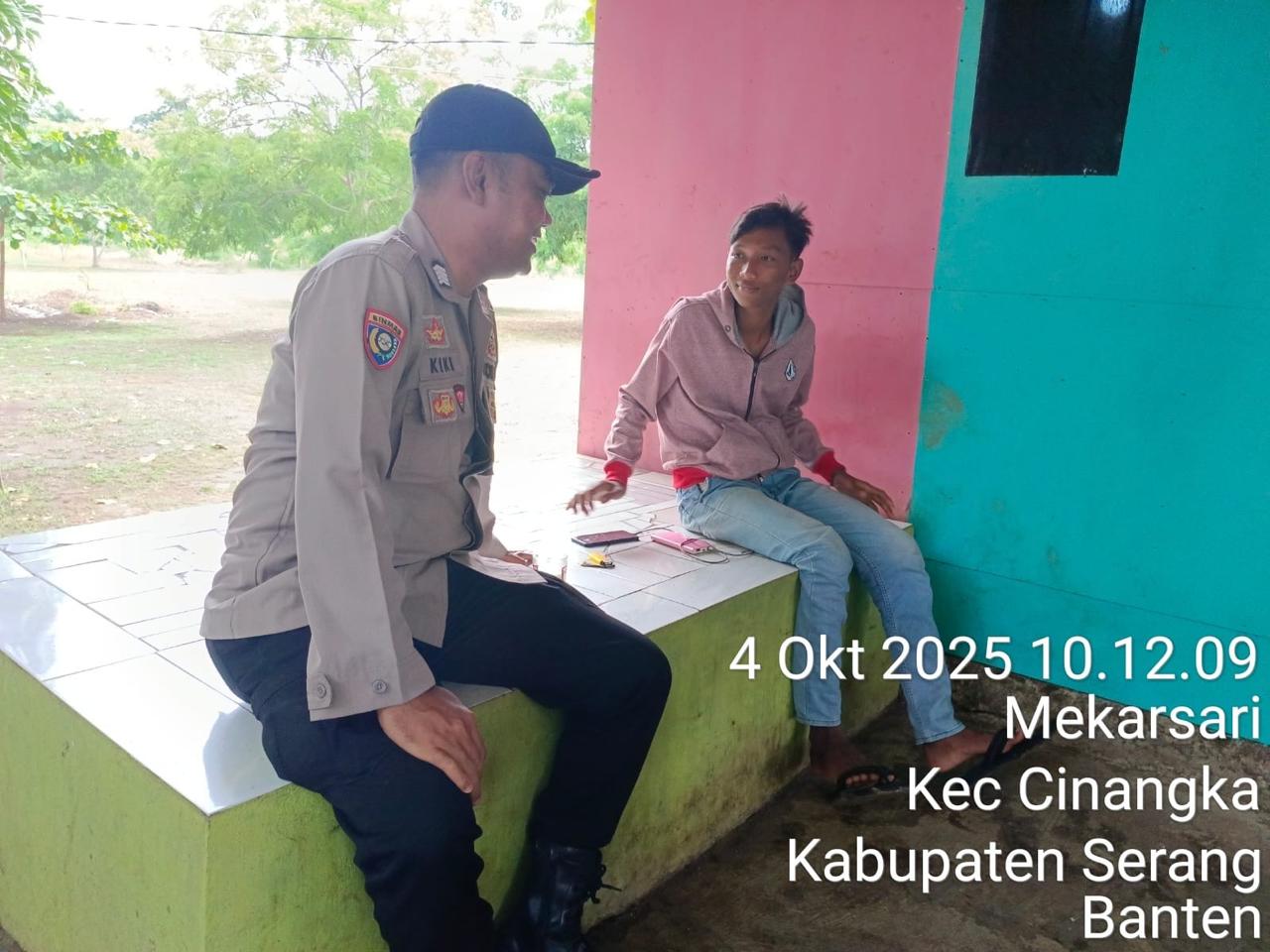 *Polres Cilegon* - Guna Menekan Gangguan Kamtibmas (GKTM), Bhabinkamtibmas Polsek Cinangka Polres Cilegon Polda Banten melakukan kegiatan Sambang di daerah hukum Polsek Cinangka, Sabtu (04/10/2025).