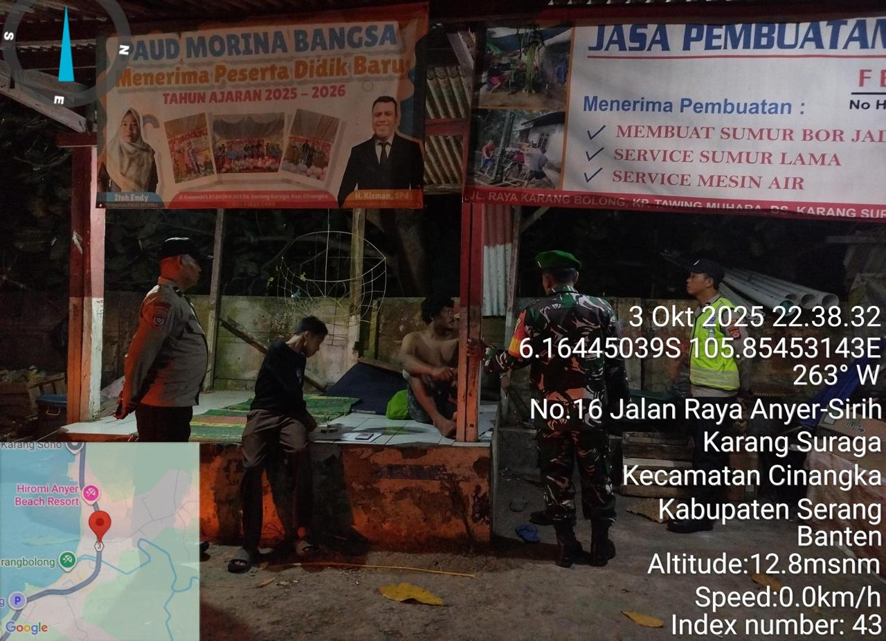 -*POLRES CILEGON*-Polda Banten. Dalam rangka Menjaga situasi kamtibmas kondusif mencegah terjadinya gangguan Kamtibmas Premanisme, Kriminalitas di wilayah Personil Piket Polsek Cinangka mencegah dan Menekan Para Pelaku kejahatan dengan Patroli Blue Light yang di Lakukan Polsek Cinangka gencar Patroli Blue Light dini hari di Wilkum Cinangka Kab Serang . Sabtu (04/10/2025)