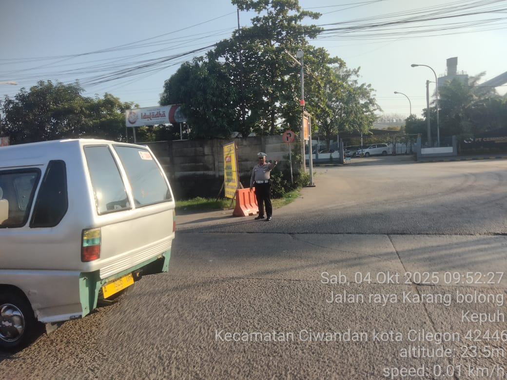 Cilegon - Pada Weekend kali ini Personil Unit Lantas Polsek Ciwandan Polres Cilegon Polda Banten melaksanakan pengaturan lalu lintas di Simpang JLS tepatnya di Pertigaan depan PT. Semen Indonesia Demi Kelancaran Arus Lalu-lintas Wisata, Sabtu (04/10/2025).