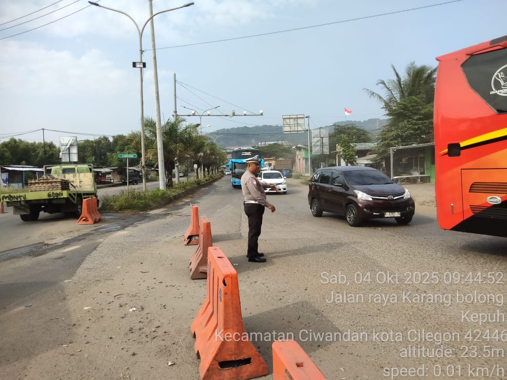 Cilegon - Pada Weekend kali ini Personil Unit Lantas Polsek Ciwandan Polres Cilegon Polda Banten melaksanakan pengaturan lalu lintas di Simpang JLS tepatnya di Pertigaan depan PT. Semen Indonesia Demi Kelancaran Arus Lalu-lintas Wisata, Sabtu (04/10/2025).