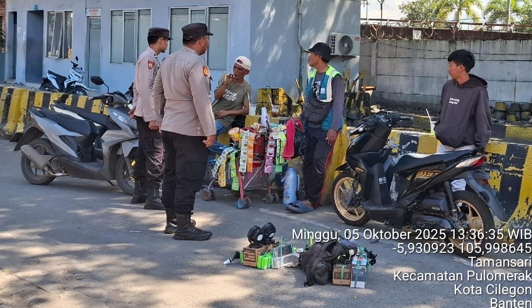 Cilegon - Personel Polsek Kskp Merak Polres Cilegon Polda Banten melaksanakan sambang dan patroli kawasan pelabuhan merak dalam rangka menjaga Harkamtibmas di Kawasan Pelabuhan Merak, Minggu (05/10/2025).