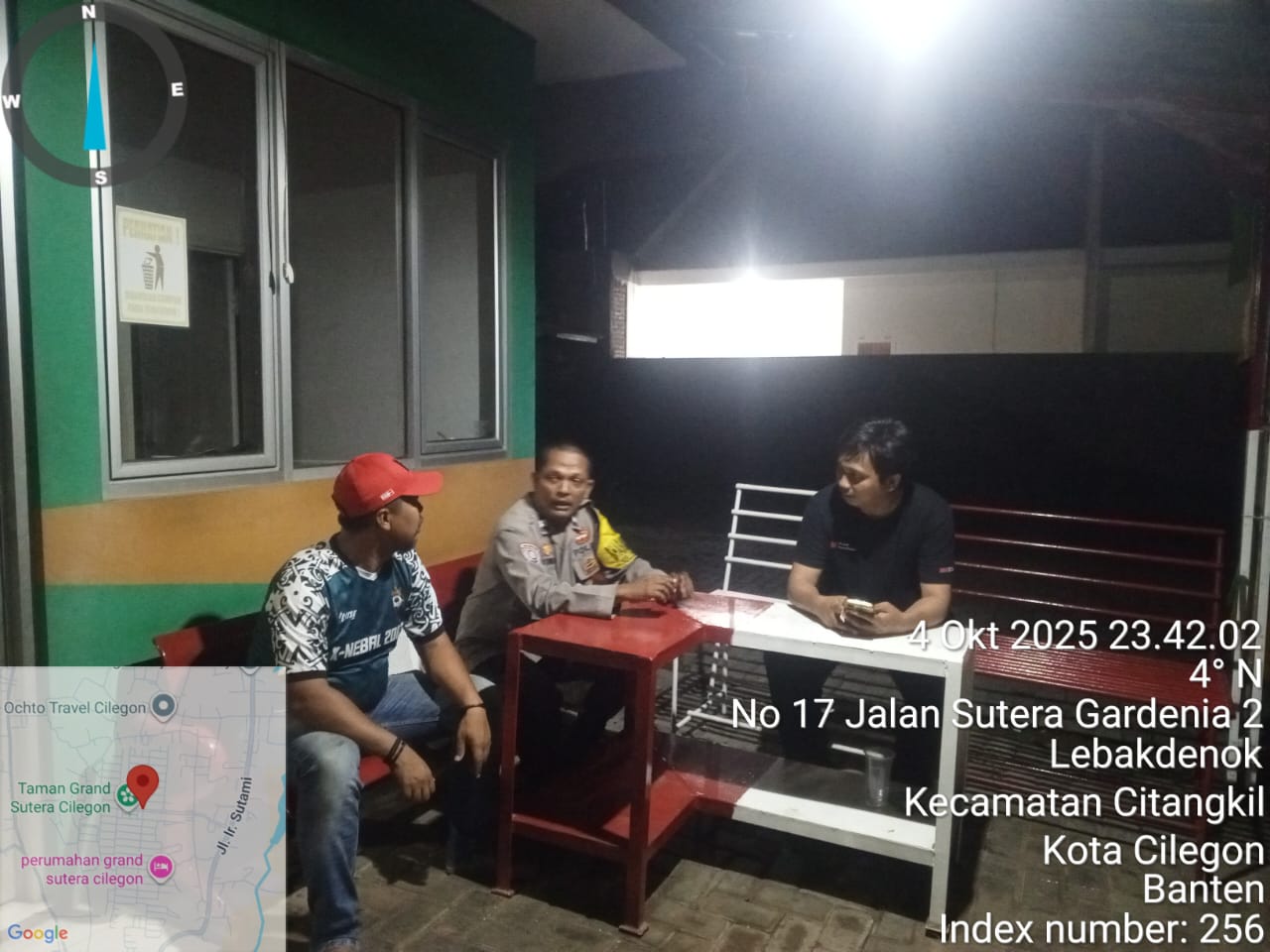 Cilegon - Guna Mencegah Terjadinya Tindak Kejahatan dan Menggiatkan Patroli Pos Ronda Siskamling di Pemukiman warga masyarakat,Personil Polsek Ciwandan Polres Cilegon Polda Banten Mengajak dan memantau pelaksanaan ronda siskamling di lingkungan daerah hukum Polsek Ciwandan, Minggu (05/10/2025).