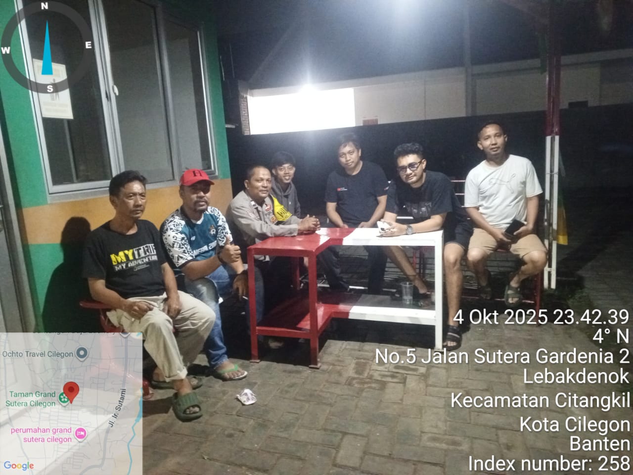 Cilegon - Guna Mencegah Terjadinya Tindak Kejahatan dan Menggiatkan Patroli Pos Ronda Siskamling di Pemukiman warga masyarakat,Personil Polsek Ciwandan Polres Cilegon Polda Banten Mengajak dan memantau pelaksanaan ronda siskamling di lingkungan daerah hukum Polsek Ciwandan, Minggu (05/10/2025).