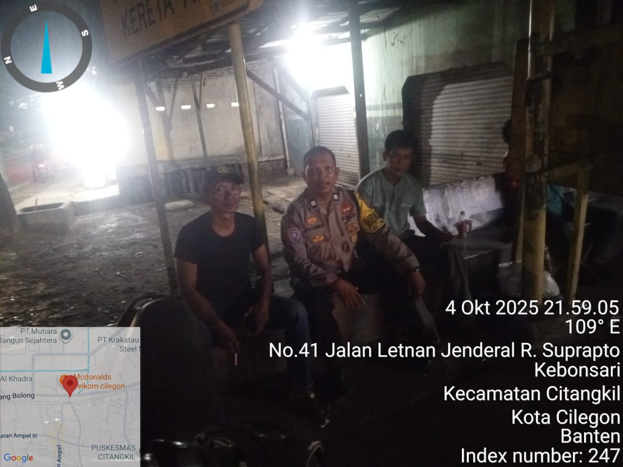 - Rute patroli meliputi Jl. Raya Citangkil, pemukiman, perumahan, kawasan industri, dan kawasan pergudangan.