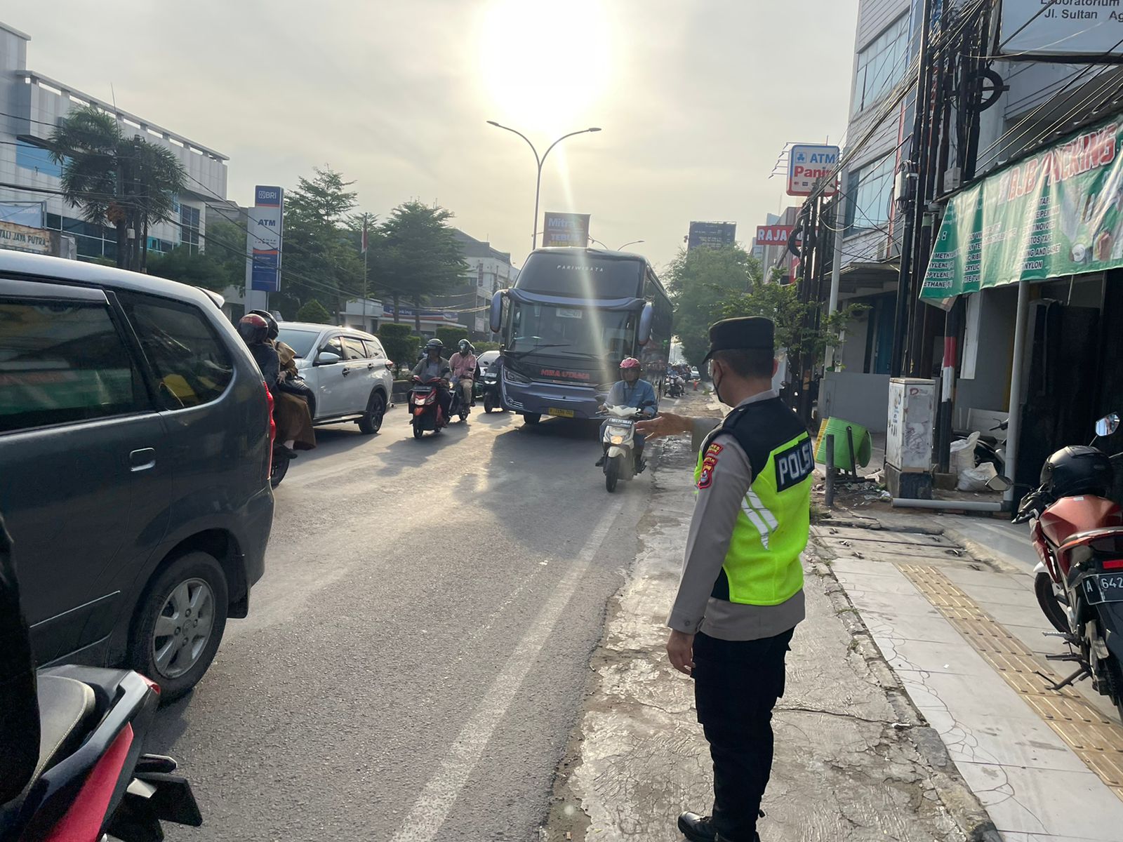 Cilegon,Polres Cilegon Polda Banten Pada Senin /06/10/2025 Pukul 06.30 Wib, Personil Siwas Polres Cilegon, Brigpol Hadi sudrajat melaksanakan kegiatan pengaturan arus lalu lintas di Jalur Protokol jalan utama Kota Cilegon tepat nya di jalur protokol Kota Cilegon.