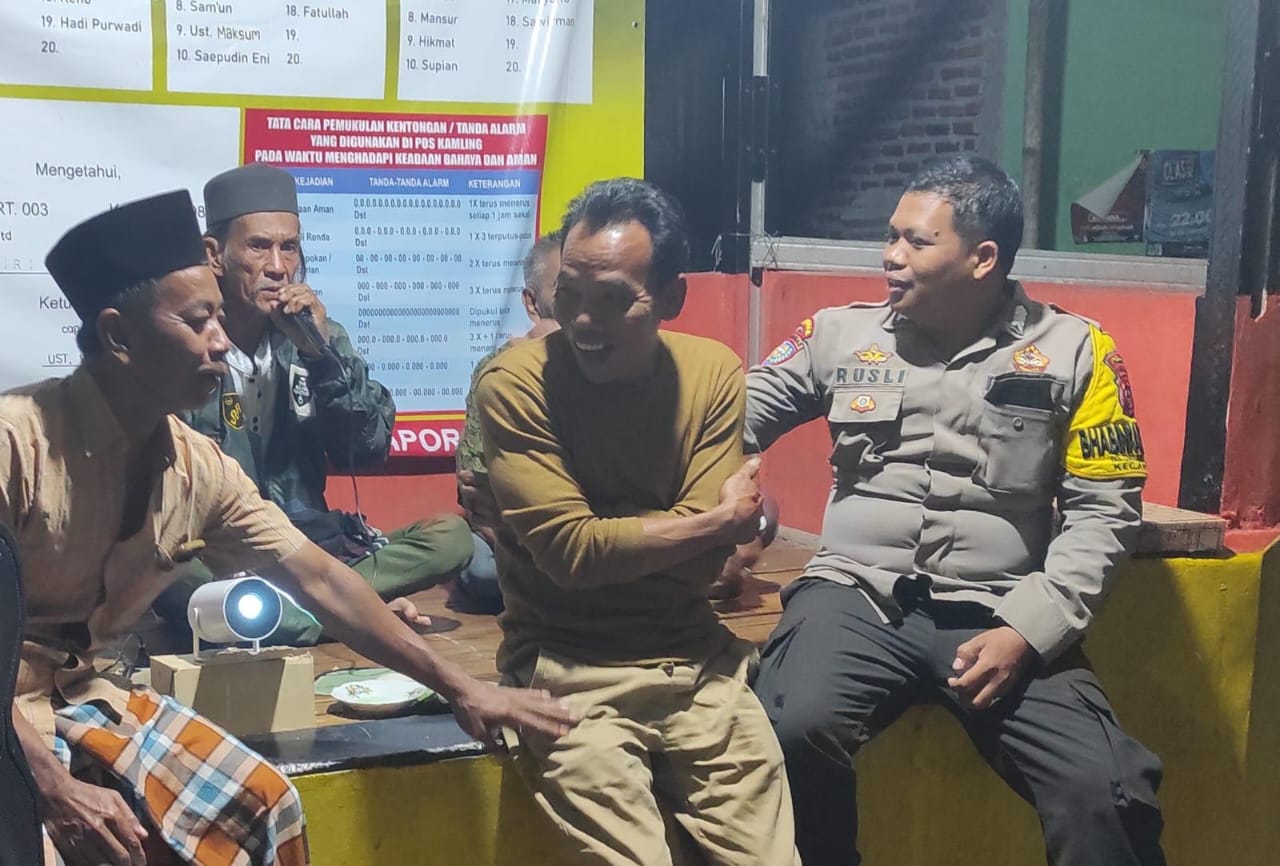 Cilegon - Personel Bhabinkamtibmas Polsek Anyar Polres Cilegon Polda Banten melaksanakan sambang Ronda Siskamling Dalam rangka menjaga Harkamtibmas dan Sebagai bentuk mendukung Program Quick Wins Presisi Polri, Senin (06/10).