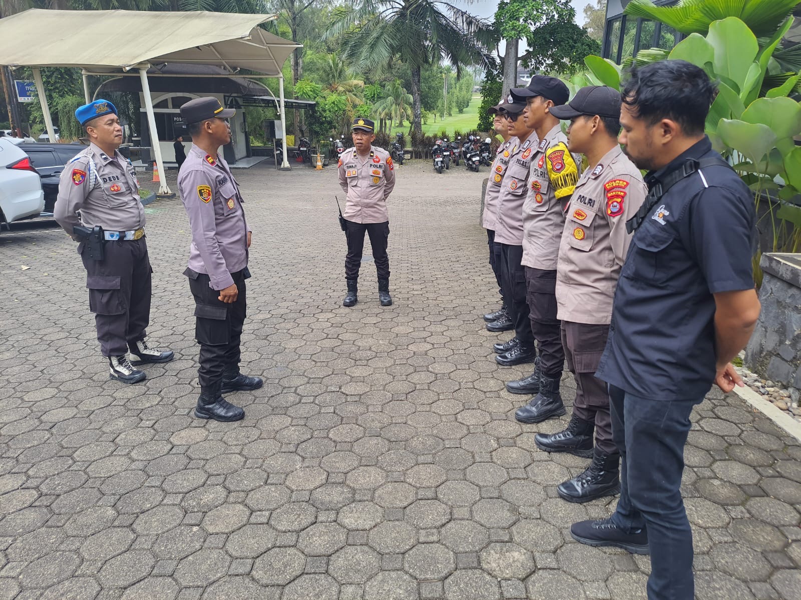-POLRES CILEGON-Polda Banten. Personil Polsek Gabungan Polres Cilegon Melaksanakan Apel kesiapan yang di Pimpin langsung IPTU SUKANDA Kapolsek Purwakarta Polres Cilegon di Hotel The Royale Krakatau.selasa.(07-10-2025)