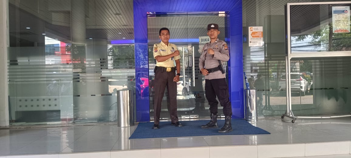 Anggota satpamobvit polres cilegon cek dan kontrol situasi bank