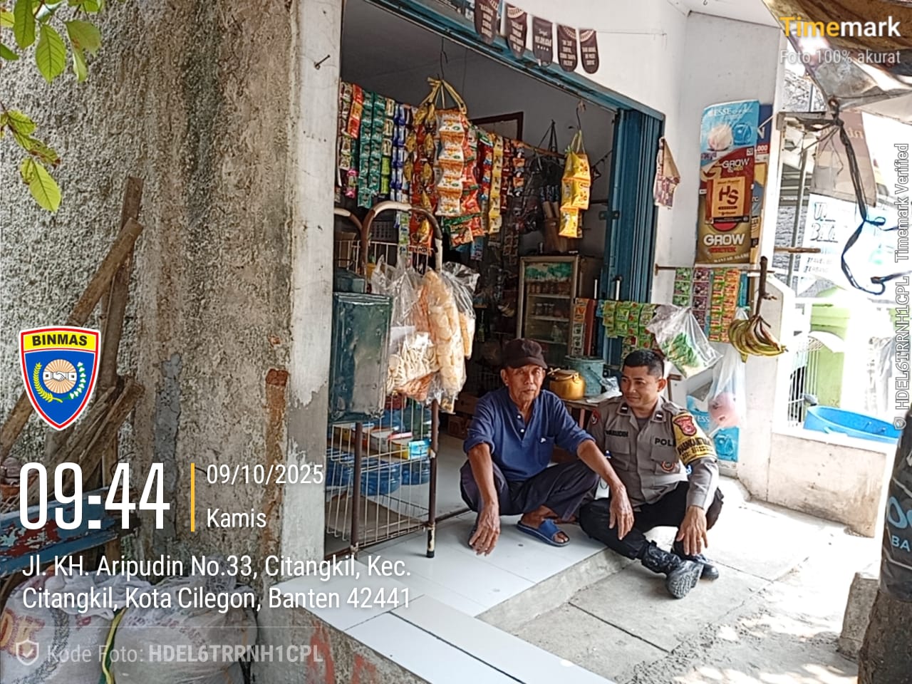 Cilegon - Bhabinkamtibmas Polsek Ciwandan Polres Cilegon Polda Banten melaksanakan kegiatan Sambang Kamtibmas ke warung sembako yang ada di lingkungan Kelurahan Citangkil Kecamatan Citangkil Kota Cilegon, Kamis (09/10/2025).
