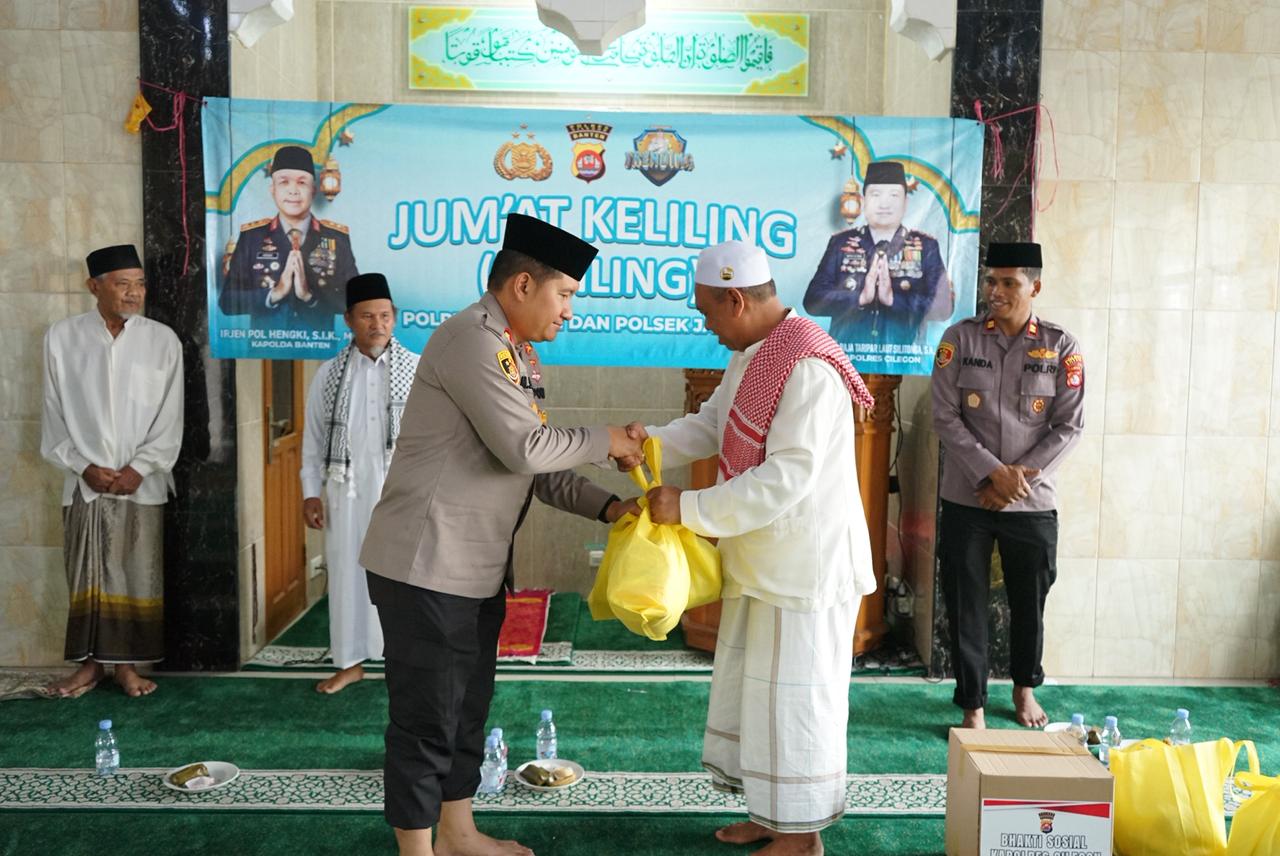 Cilegon – Dalam rangka mempererat hubungan antara Polri dan masyarakat, Kapolres Cilegon Polda Banten, AKBP Dr. Martua Raja Taripar Laut Silitonga, S.H., S.I.K., M.Si., melaksanakan kegiatan silaturahmi Jum’at Keliling (Jumling) di Masjid Al-Mutahidin, Blok Bango, Lingkungan Leuweung Sawo, Kelurahan Kotabumi, Kecamatan Purwakarta, Kota Cilegon. Kegiatan berlangsung hangat dan penuh kebersamaan usai pelaksanaan ibadah salat Jumat. Jumat (10/10/2025).
