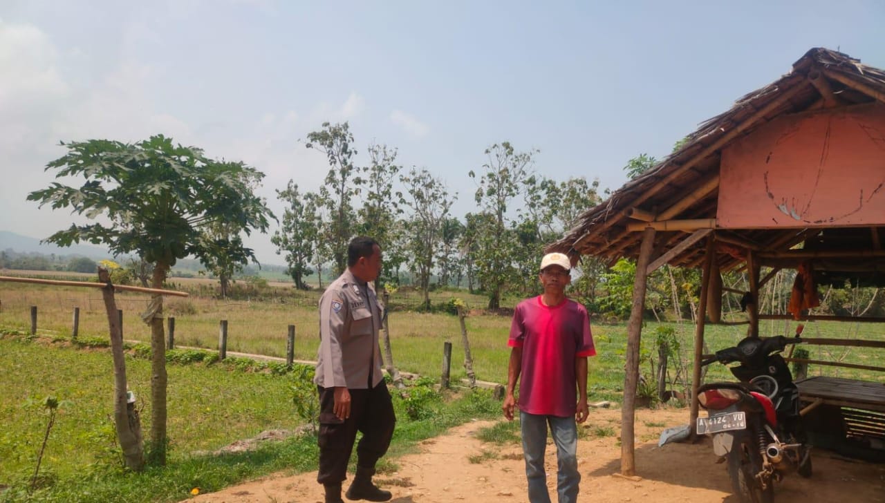 Cilegon – Dalam rangka mendukung program ketahanan pangan nasional dan swasembada pangan Bhabinkamtibmas Polsek Anyar melaksanakan kegiatan sambang dan monitoring lahan pertanian jagung di Desa Cikoneng, Kecamatan Anyar, Kabupaten Serang. Jum'at (10/10)