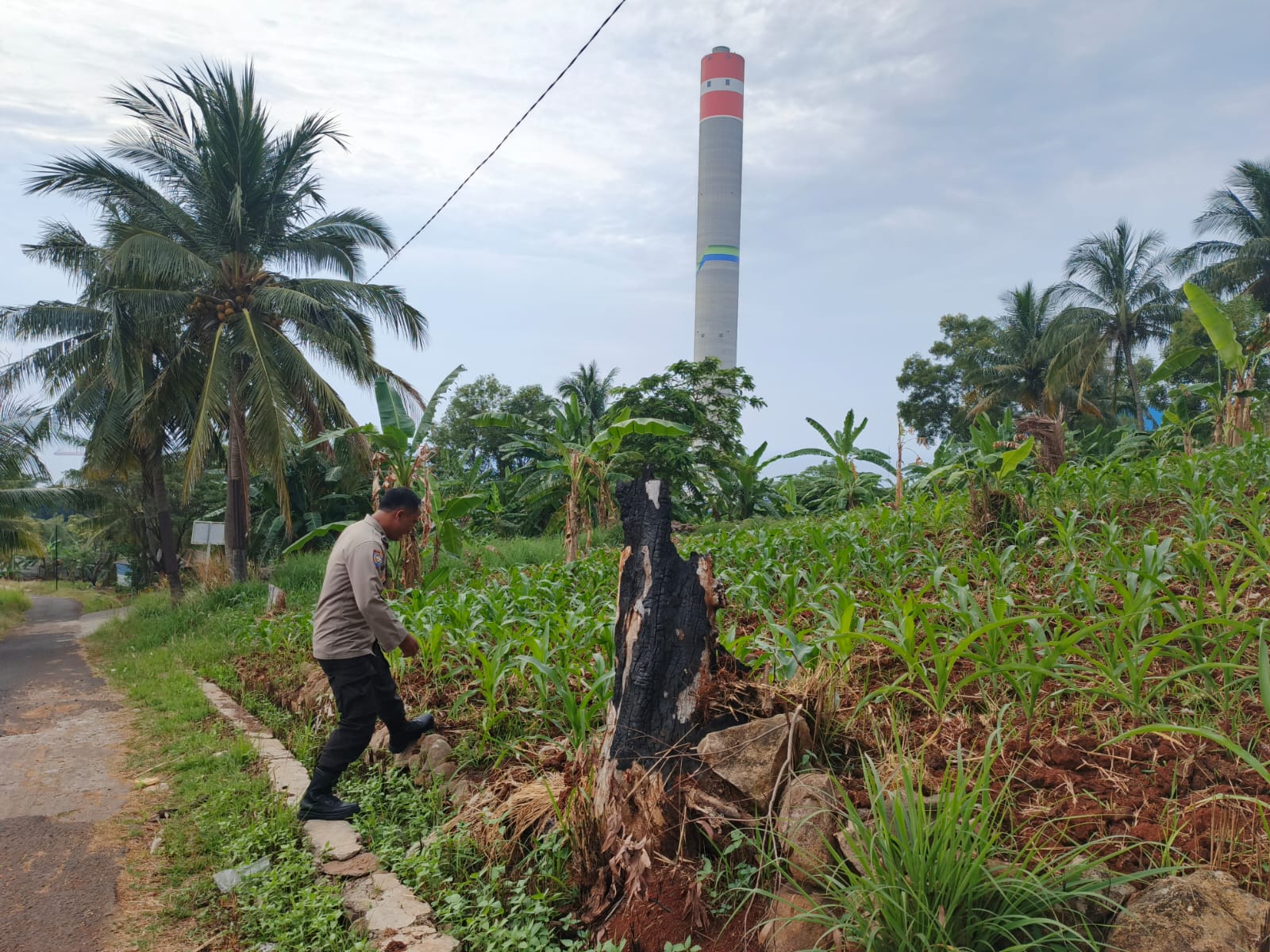 Oleh sebab itu Kapolsek Pulomerak bersama bhabinkamtibmas polsek Pulomerak bersama masyarakat Kel. Lebakgede kec. Pulomerak meninjau lahan jagung, ujarnya