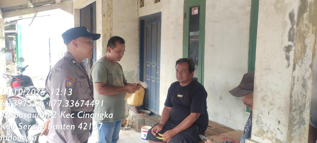 *Polres Cilegon* - Guna Menekan Gangguan Kamtibmas (GKTM) ,Bhabinkamtibmas Polsek Cinangka Polres Cilegon Polda Banten melakukan kegiatan Sambang di daerah hukum Polsek Cinangka, Sabtu (11/10/2025).