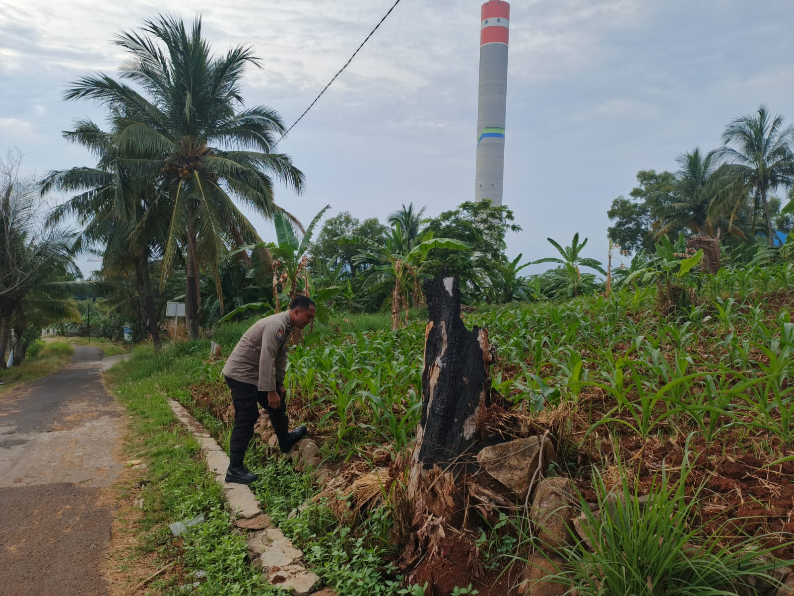 Oleh sebab itu Kapolsek Pulomerak bersama bhabinkamtibmas polsek Pulomerak bersama masyarakat Kel. Lebakgede kec. Pulomerak meninjau lahan jagung, ujarnya