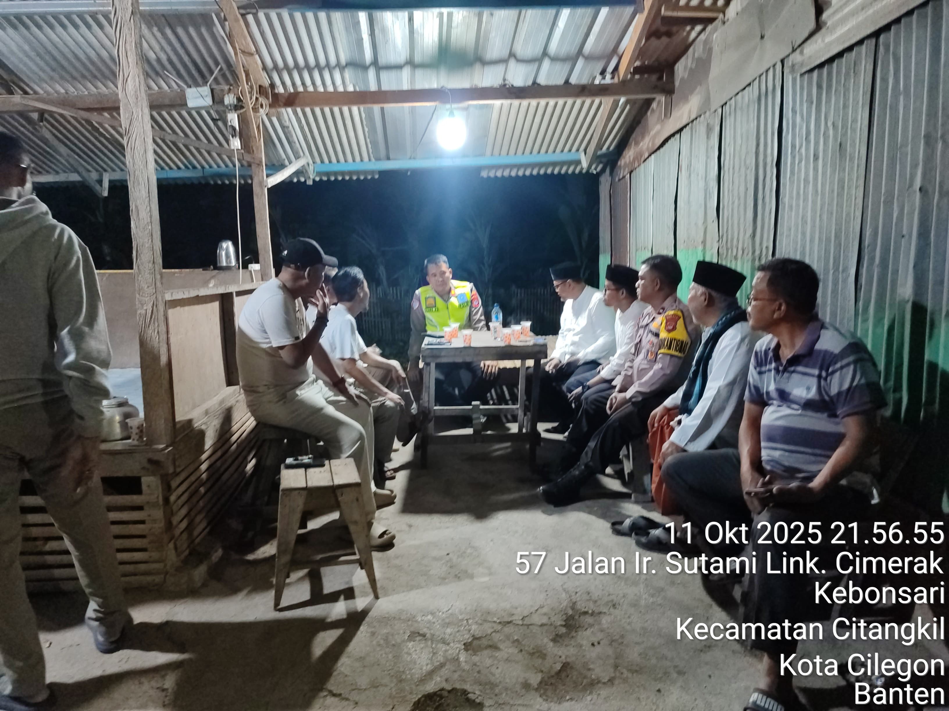 Cilegon - Kanit Lantas Polsek Ciwandan Polres Cilegon Polda Banten AKP Haris Munandar bersama Personil Polsek Ciwandan Polres Cilegon Polda Banten melakukan kontrol Pos Ronda dan Berikan himbauan kepada pihak terkait dan warga, agar kegiatan Siskamling ditingkatkan lagi, Minggu (11/10/202).