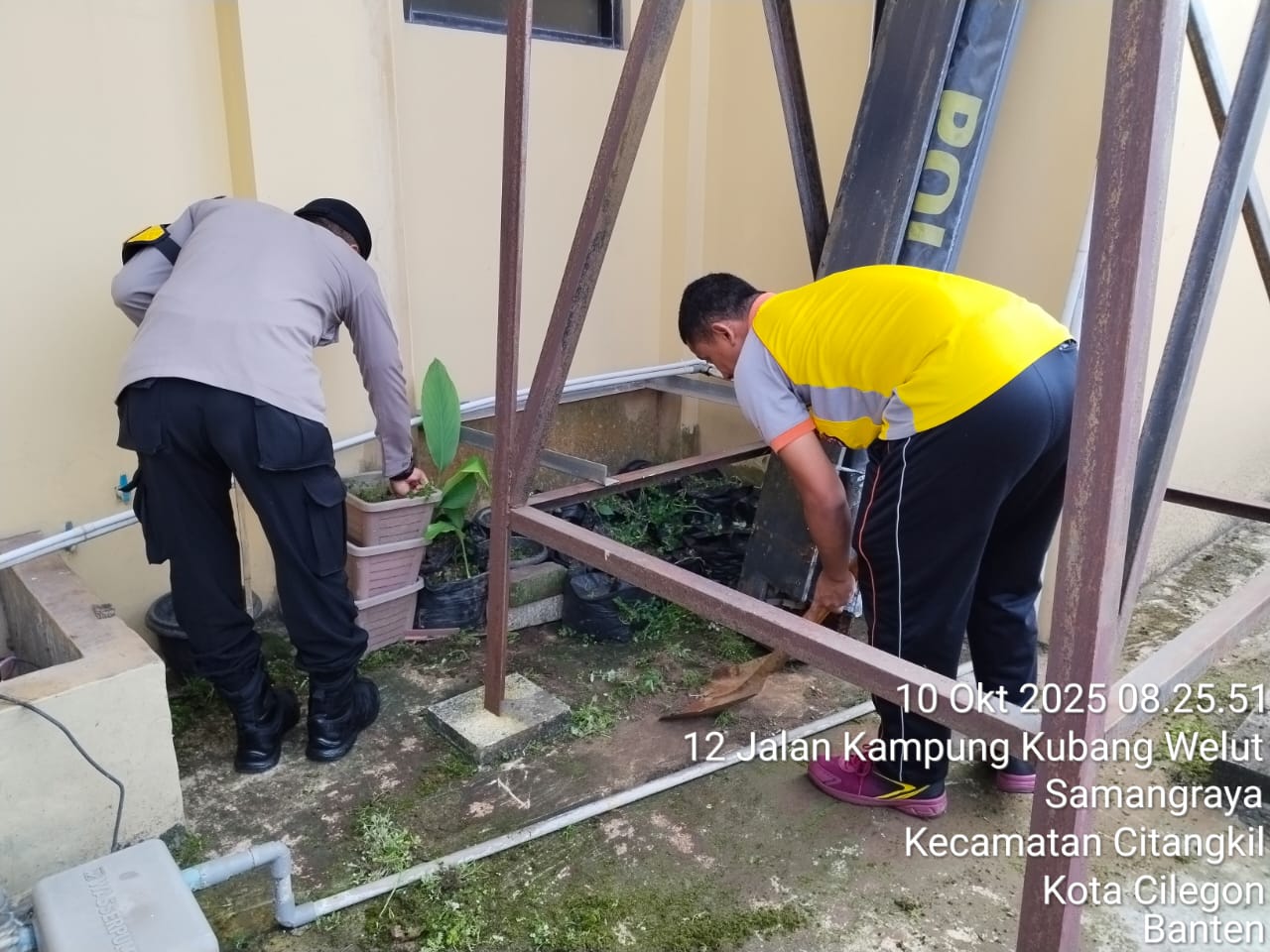 Cilegon – Demi Menjaga Kebersihan Personil Polsek Ciwandan Polres Cilegon Polda Banten Bersama-sama Bersih-bersih lingkungan Markas Komando Dan Ruang Kerja Masing-masing guna menciptakan situasi lingkungan yang sehat dan bersih, Sabtu (11/10/2025).