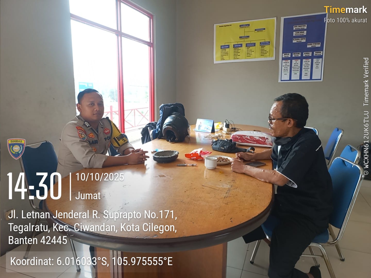 Cilegon – Guna Memastikan Situasi Yang kondusif,Kanit Binmas Beserta Bhabinkamtibmas Polsek Ciwandan Polres Cilegon Polda Banten Sambangi SPBU 34.424.03. Cigading kelurahan Tegalratu Kecamatan Ciwandan Kota Cilegon ,Sabtu (11/10/2025).