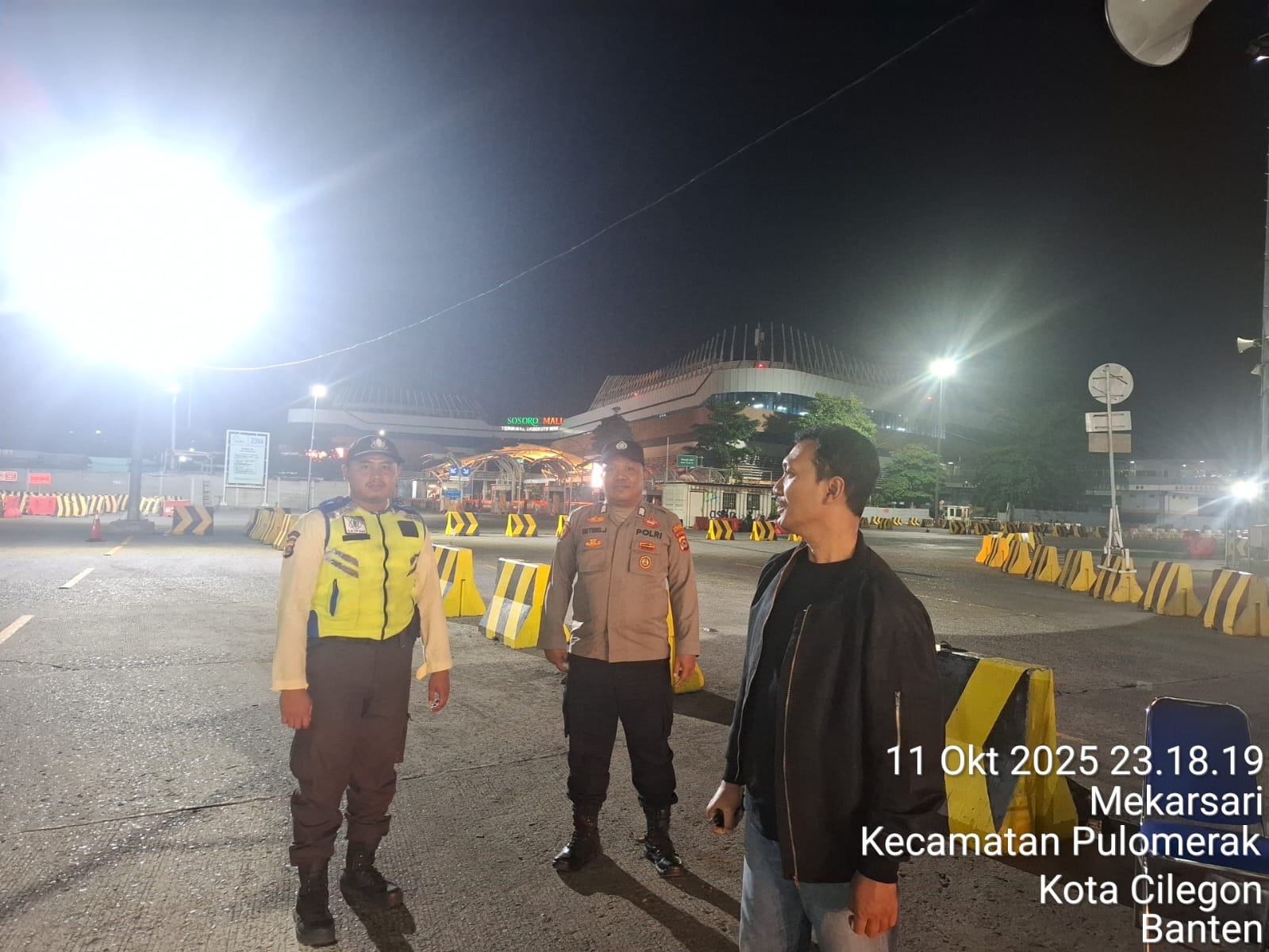 Cilegon - Personil Polsek Kskp Merak Polres Cilegon melaksanakan patroli di kawasan pelabuhan merak memberikan rasa aman dan damai, Minggu (12/10/2025)