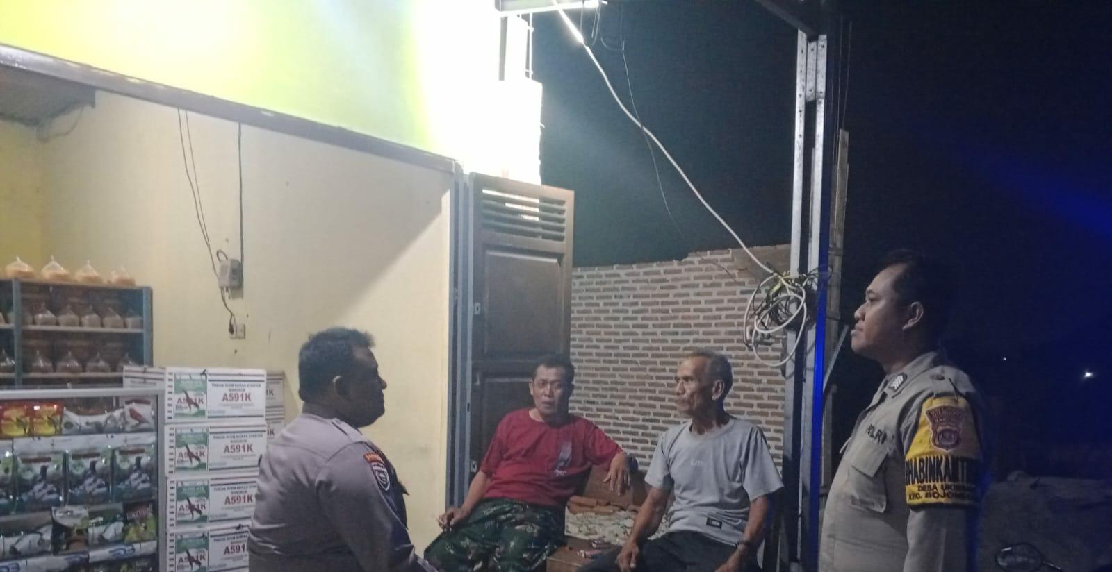 Bhabinkamtibmas menyambangi warga yang sedang duduk-duduk santai dan ngobrol , pada kesempatan yang baik tersebut Bhabinkamtibmas menyampaikan pesan-pesan kamtibmas dan Mengajak masyarakat untuk meningkatkan kewaspadaan serta untuk bersama-sama ikut serta menjaga keamanan lingkungan guna mencegah terjadinya gangguan kamtibmas.