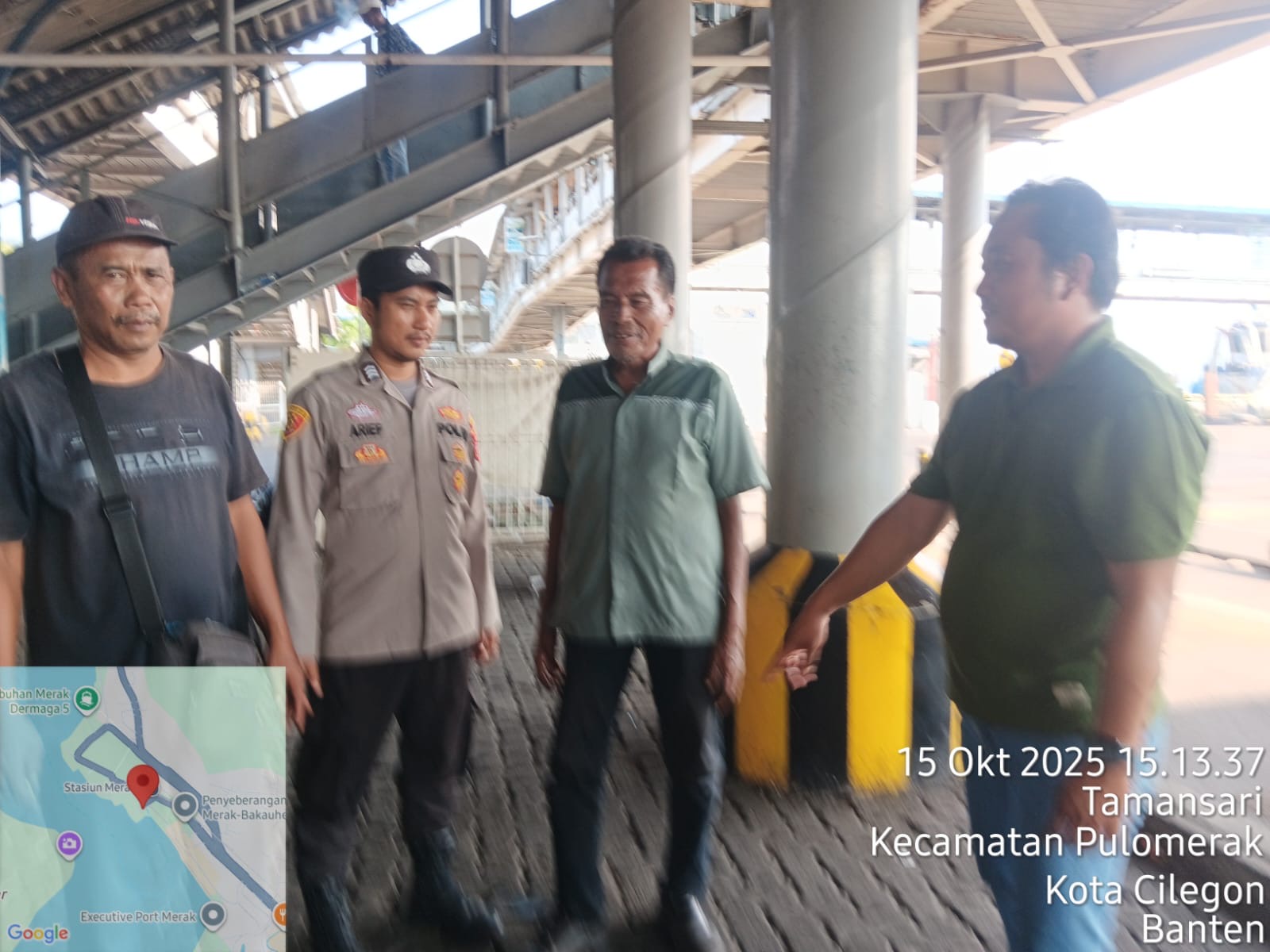 Cilegon - Personel Polsek Kskp Merak Polres Cilegon Polda Banten melaksanakan sambang dan patroli kawasan pelabuhan merak dalam rangka menjaga Harkamtibmas di Kawasan Pelabuhan Merak, Rabu (15/10/2025).