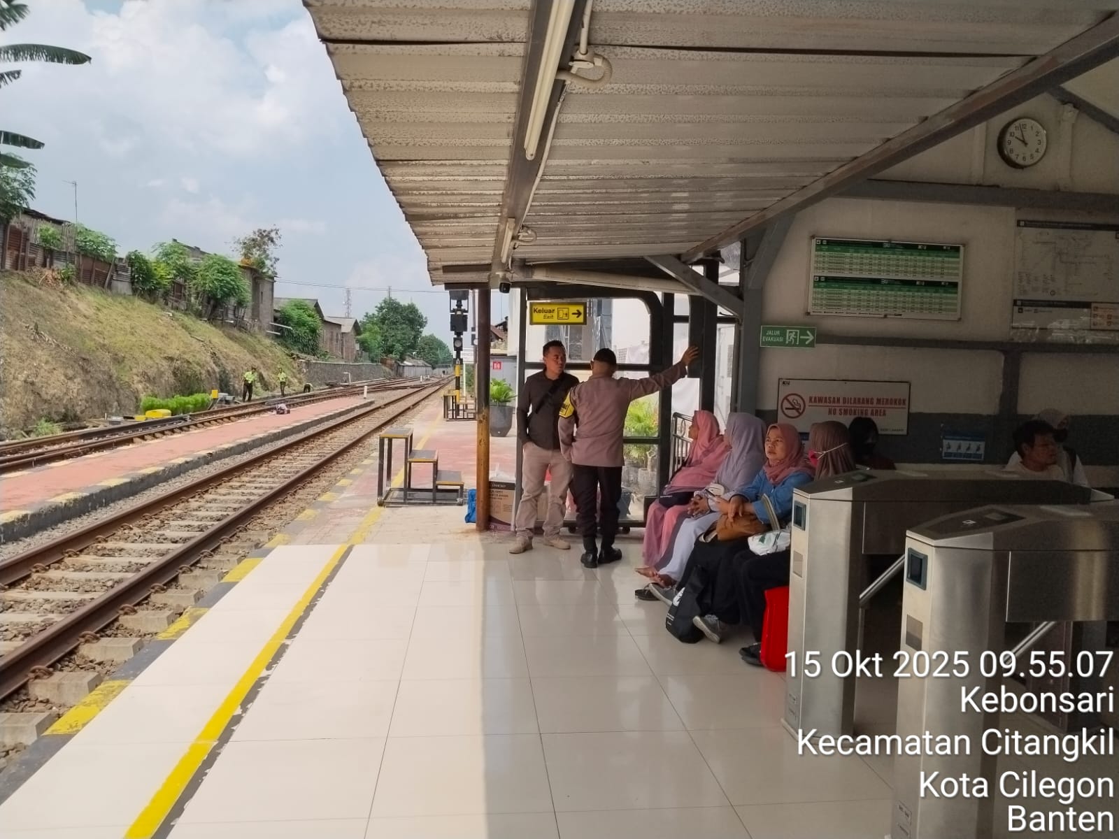 Cilegon - Personil Polsek Ciwandan Polres Cilegon Polda Banten melaksanakan giat patroli Dan dengan sambangi Petugas Stasiun Kereta Api dan penjaga pintu perlintasan kereta api,Rabu (15/10/2025).