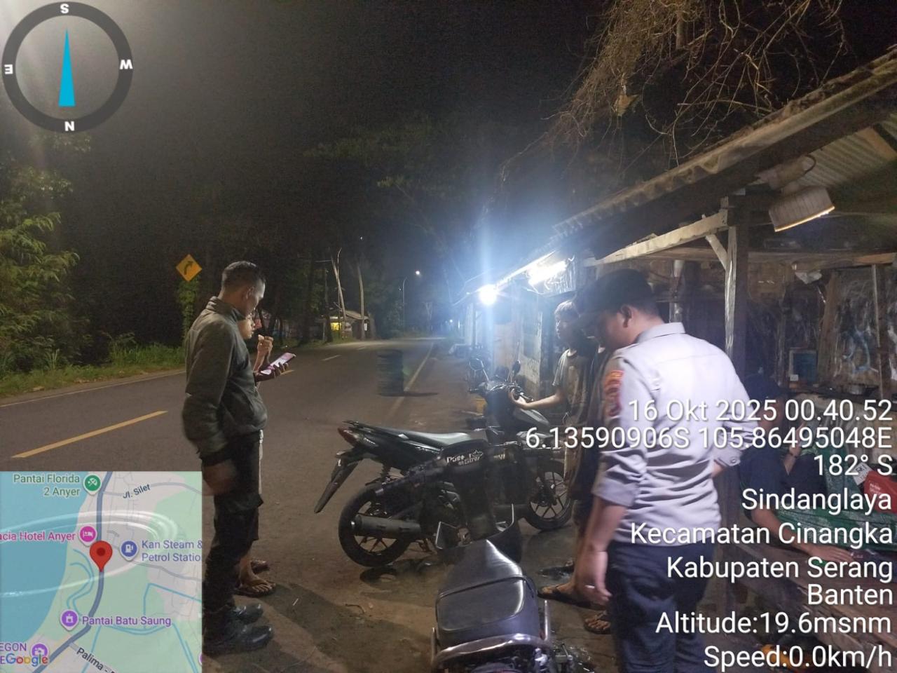 *Cilegon* – Dalam Rangka Pencegahan Kejahatan Jalanan dan Memelihara situasi keamanan dan menjaga serta memberikan rasa aman dan nyaman di masyarakat,Salah satu upaya untuk mewujudkan hal tersebut sebagaimana yang dilakukan oleh Personil Polsek Cinangka Polres Cilegon Polda Banten melaksanakan giat patroli blue light malam hari hingga menjelang pagi, Kamis (16/10/2025).