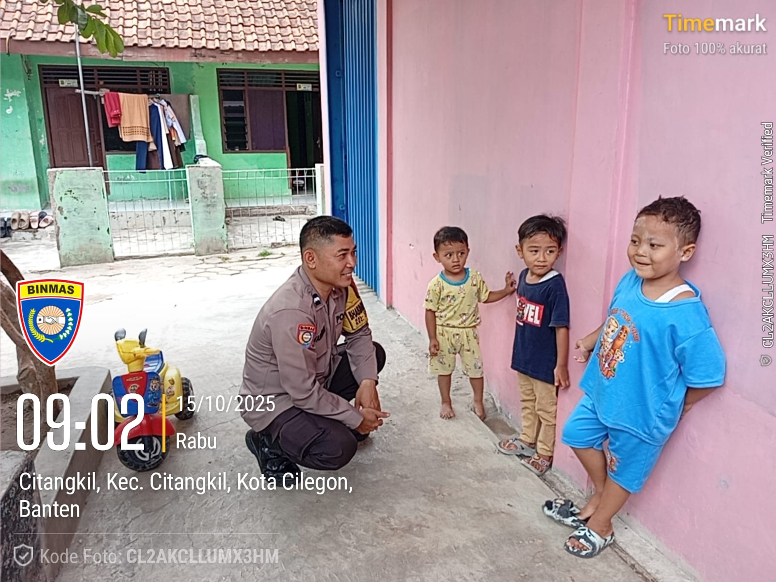 Cilegon - Kenalkan Sosok Polri Kepada Anak-anak,Bhabinkamtibmas Polsek Ciwandan Polres Cilegon Polda Banten AIPDA Warudin melaksanakan kegiatan Polisi Sahabat Anak (PSA), Kamis (16/10/2025).