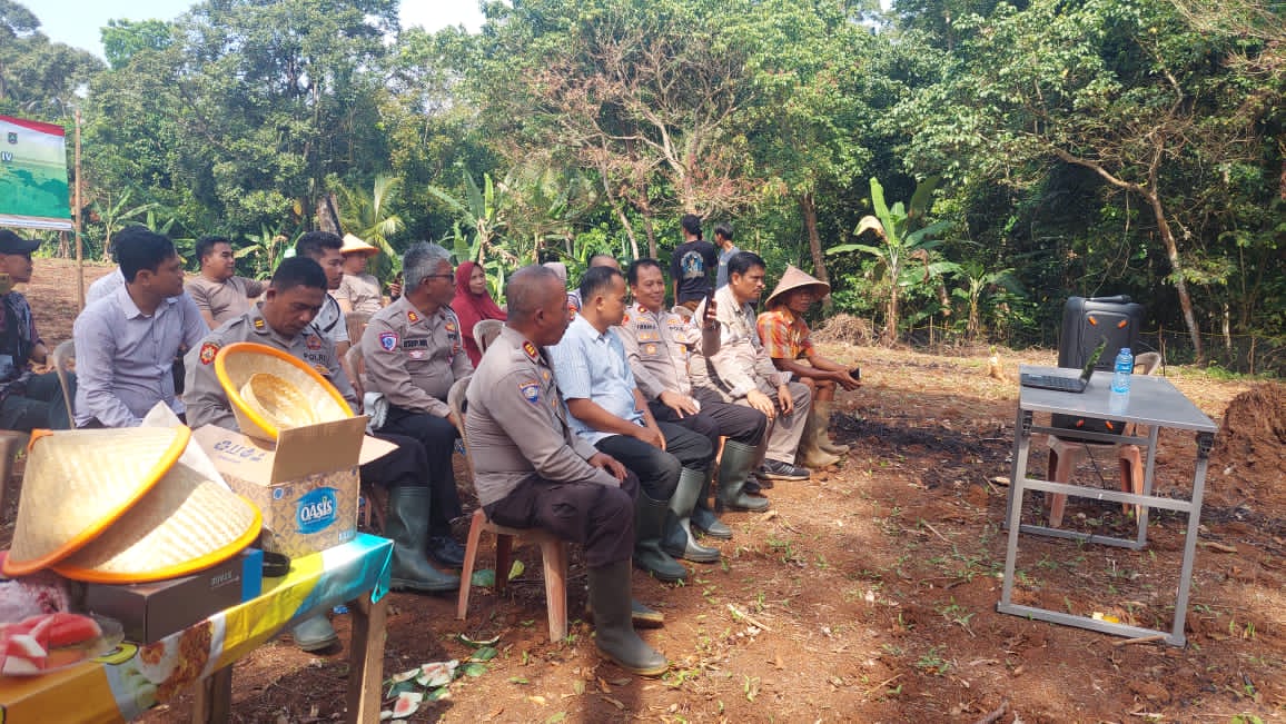 Penanaman Jagung serentak Kuartal IV Seluruh Indonesia di lahan milik kelompok tani Bpk. Maman Rt. 01/01 Kp. Macute Kel. Angsana Kec. Mancak-Serang daerah hukum Polres Cilegon.