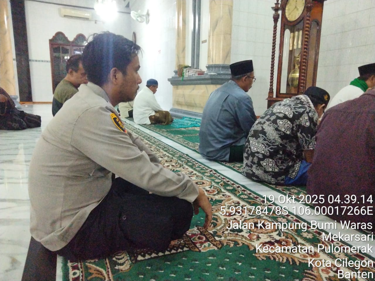 “Dalam kegiatan tersebut, Personil Polsek Kp Polres Cilegon Polda Banten turut berbaur dengan jemaah masjid dalam melaksanakan shalat subuh berjamaah. Setelah itu, dilakukan dialog interaktif antara petugas kepolisian dan masyarakat untuk mendengarkan aspirasi serta memperoleh masukan terkait dengan situasi keamanan dan ketertiban di lingkungan sekitar,” tambah Kapolsek.