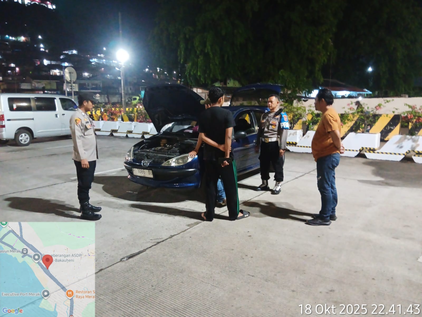 Cilegon - Personil Polsek Kskp Merak Polres Cilegon melaksanakan patroli di kawasan pelabuhan merak memberikan rasa aman dan damai, Minggu (19/10/2025)