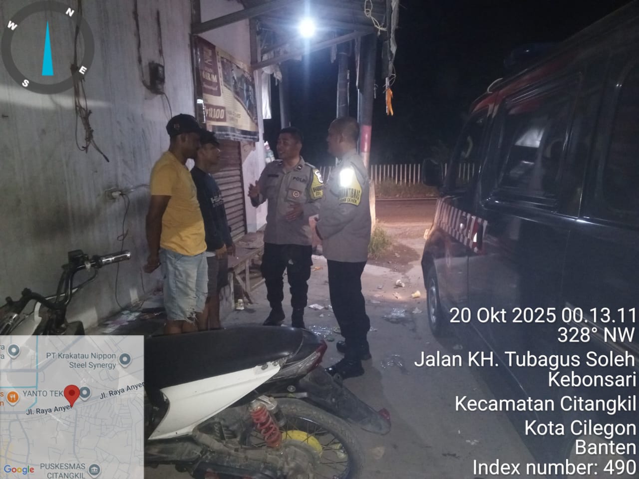 Cilegon - Personil Polsek Ciwandan Ciptakan situasi keamanan dan ketertiban di masyarakat (Kamtibmas) yang aman kondusif Dengan Melaksanakan kegiatan patroli malam guna mencegah gangguan kamtibmas dan kejahatan jalanan, Senin (20/10/2025).