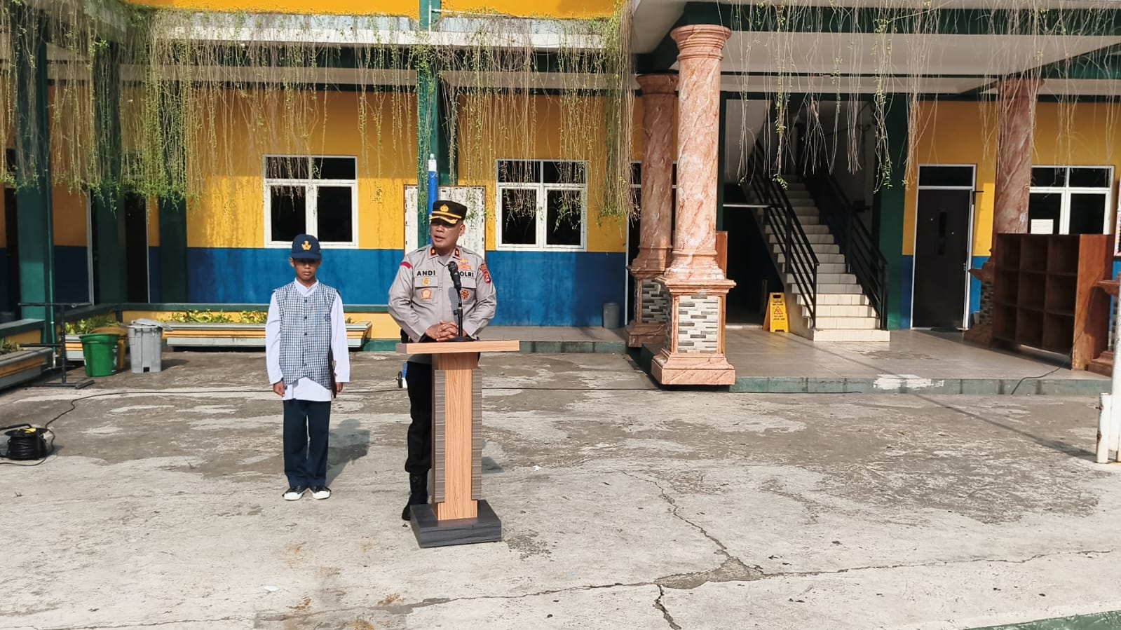 Cilegon - Melalui Kapolsek Ciwandan, Kompol And Suherman, melaksanakan program Polisi Peduli Pendidikan dengan menjadi pembina upacara di SD & SMP IT Mumtaz Al Bantani, Kelurahan Samangraya, Kecamatan Citangkil, Kota Cilegon, Senin (20/10/2025).
