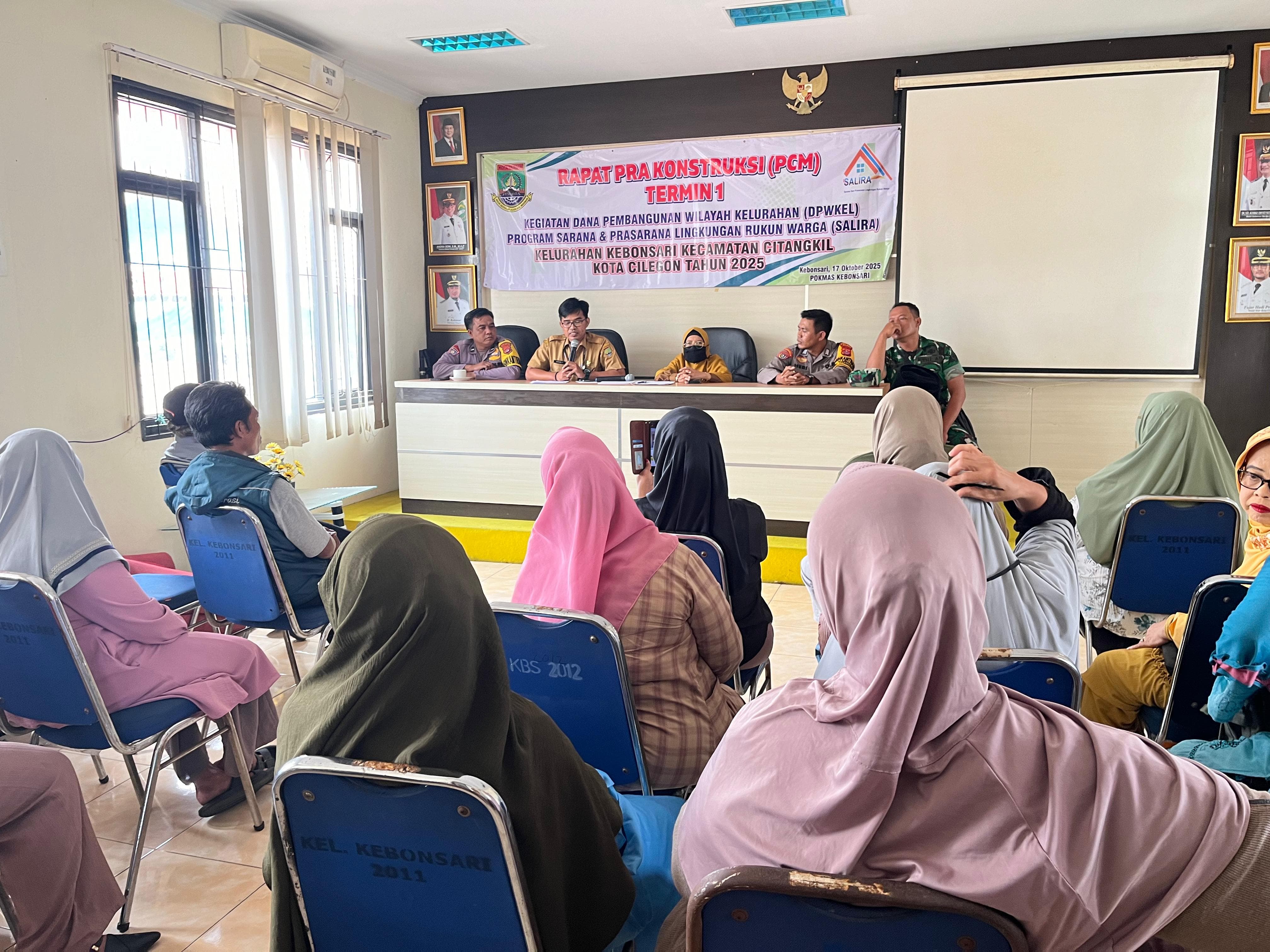 Cilegon - Bhabinkamtibmas Polsek Ciwandan Polres Cilegon Polda Banten Melaksanakan kegiatan Rapat Pra Kontruksi Pelaksanaan pembangunan Desa Kecamatan Citangkil kota Cilegon, Senin (20/10/2025).
