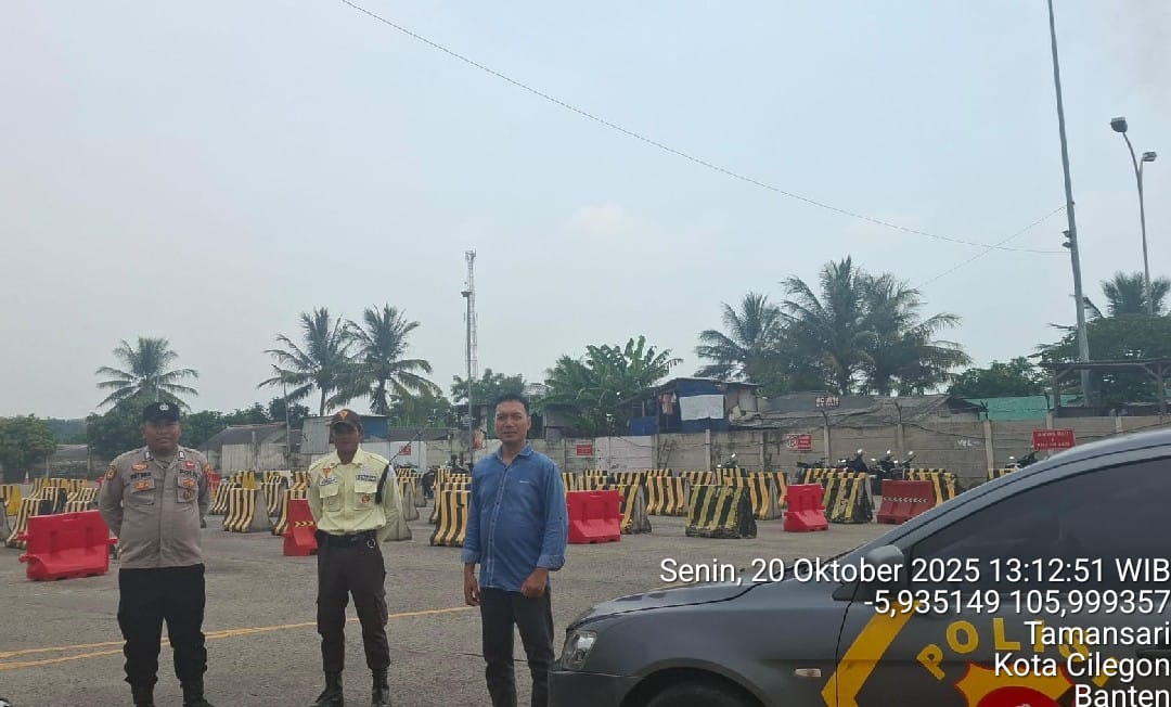 Cilegon - Personel Polsek Kskp Merak Polres Cilegon Polda Banten melaksanakan sambang dan patroli kawasan pelabuhan merak dalam rangka menjaga Harkamtibmas di Kawasan Pelabuhan Merak, Senin (19/10/2025).