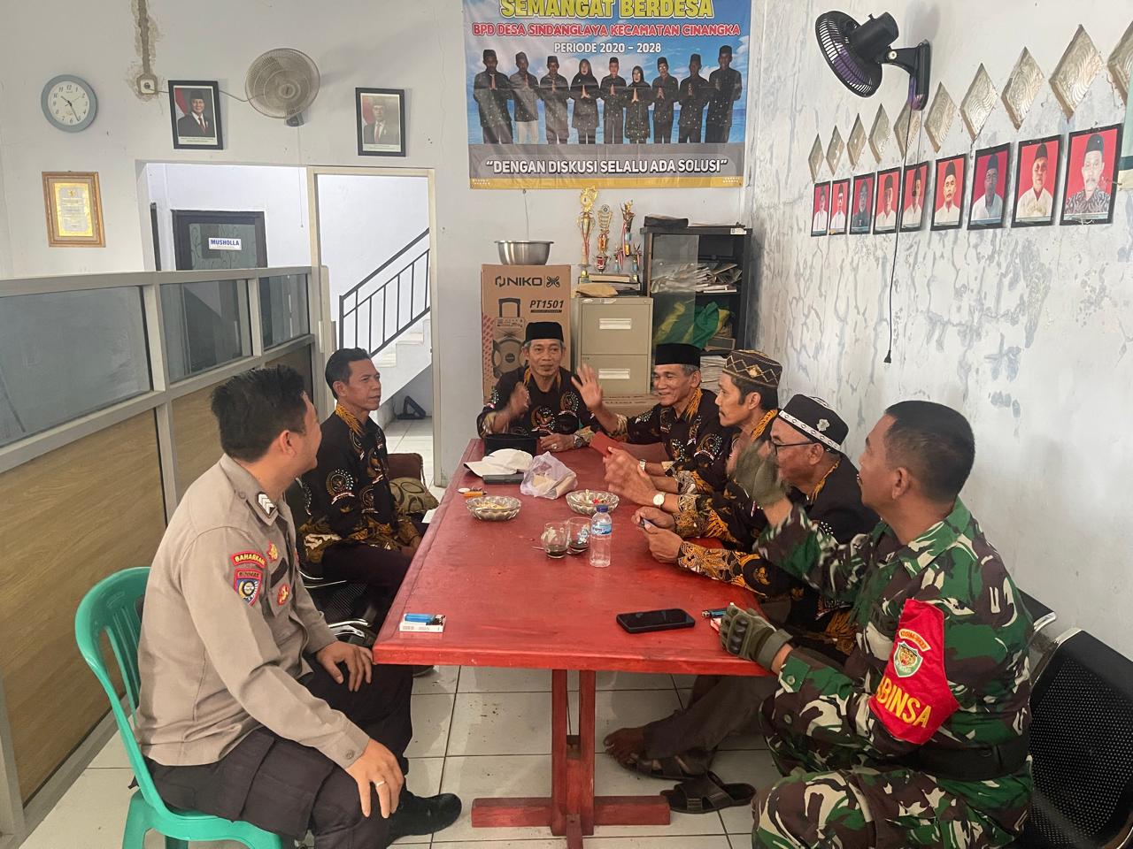 *Cilegon* - Bhabinkamtibmas Polsek Cinangka Guyub TNI-POLRI dalam rangka memberikan pelayanan terbaik kepada warga masyarakat di lingkungan Desa Sindanglaya kecamatan Cinangka, Selasa (21/10/2025).