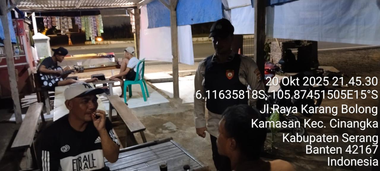 *Cilegon* – Dalam Rangka Pencegahan Kejahatan Jalanan dan Memelihara situasi keamanan dan menjaga serta memberikan rasa aman dan nyaman di masyarakat,Salah satu upaya untuk mewujudkan hal tersebut sebagaimana yang dilakukan oleh Personil Polsek Cinangka Polres Cilegon Polda Banten melaksanakan giat patroli blue light malam hari hingga menjelang pagi, Selasa (21/10/2025).