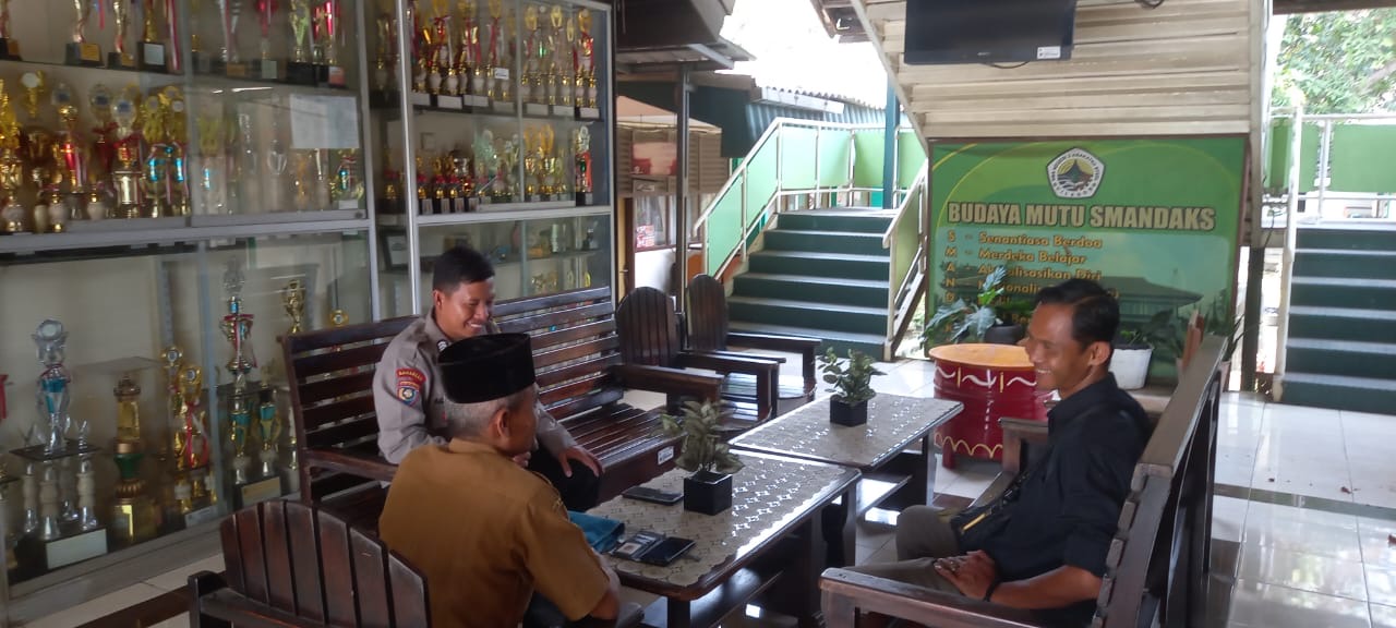 -POLRES CILEGON– Polda Banten. Bhabinkamtibmas Kelurahan Kotabumi, Bripka Agustoni, melaksanakan kegiatan sambang ke SMA Negeri 2 Cilegon. Dalam kunjungan tersebut, Bripka Gustoni bersilaturahmi dengan Kepala Sekolah (KS) serta para guru, sekaligus menyampaikan himbauan kamtibmas di wilayah Kelurahan Kotabumi, Kecamatan Purwakarta, Kota Cilegon.selasa.[21-10-2025].