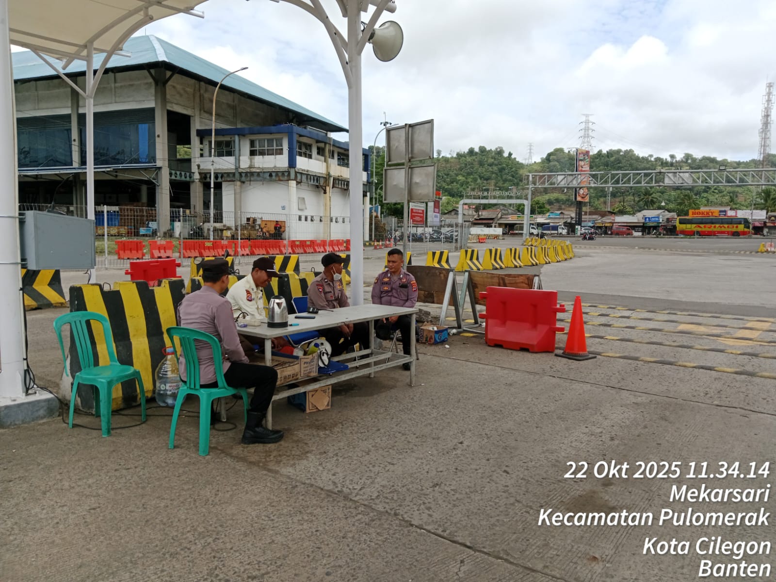Cilegon - Personel Polsek Kskp Merak Polres Cilegon Polda Banten melaksanakan sambang dan patroli kawasan pelabuhan merak dalam rangka menjaga Harkamtibmas di Kawasan Pelabuhan Merak, Rabu (22/10/2025).