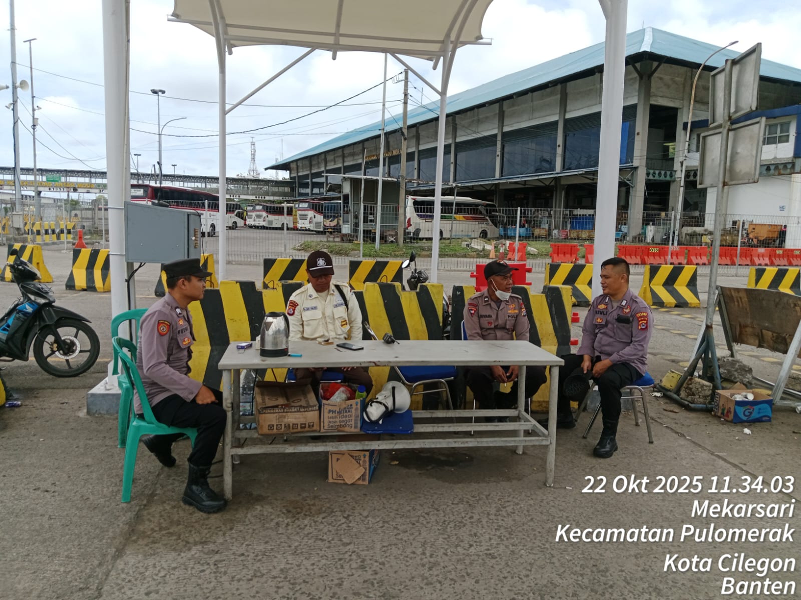 Cilegon - Personel Polsek Kskp Merak Polres Cilegon Polda Banten melaksanakan sambang dan patroli kawasan pelabuhan merak dalam rangka menjaga Harkamtibmas di Kawasan Pelabuhan Merak, Rabu (22/10/2025).