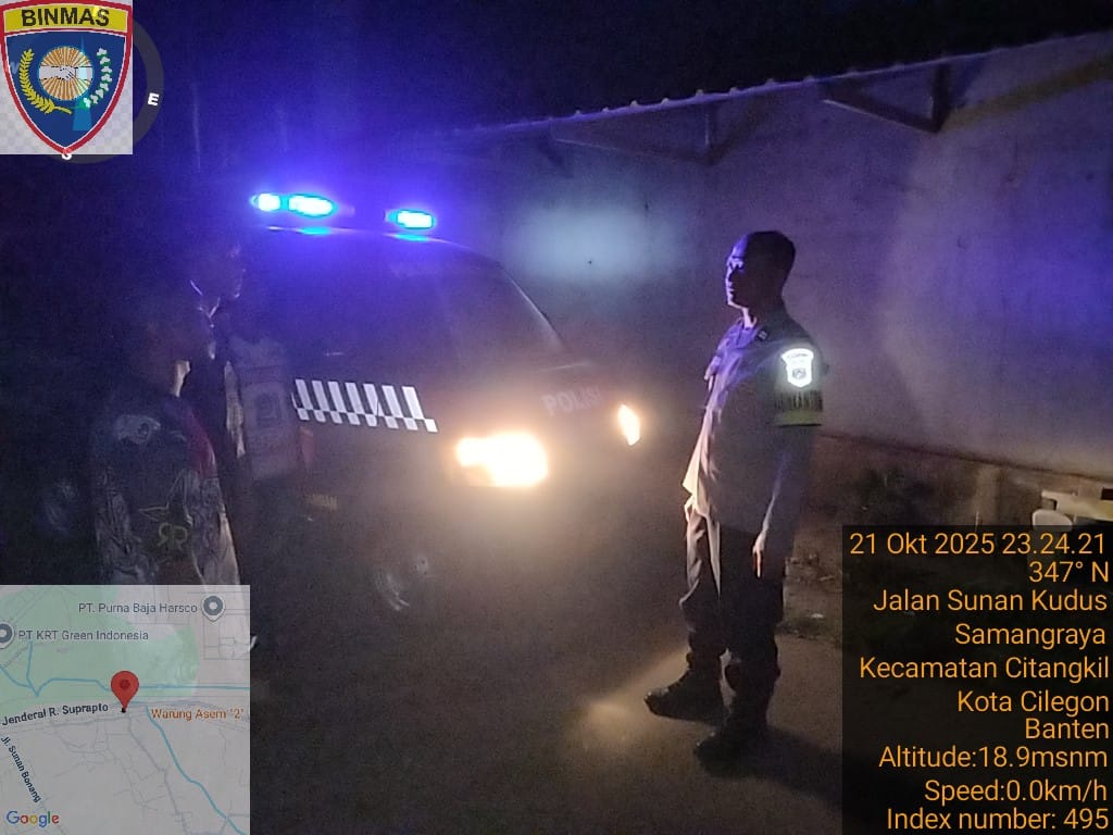Cilegon - Dalam rangka menekan tindak kriminalitas serta untuk memberikan rasa aman dan nyaman kepada masyarakat terutama pada malam hari,Personil Polsek Ciwandan Polres Cilegon Polda Banten melakukan patroli malam hari di daerah-daerah yang rawan kriminalitas, Rabu (22/10/2025).