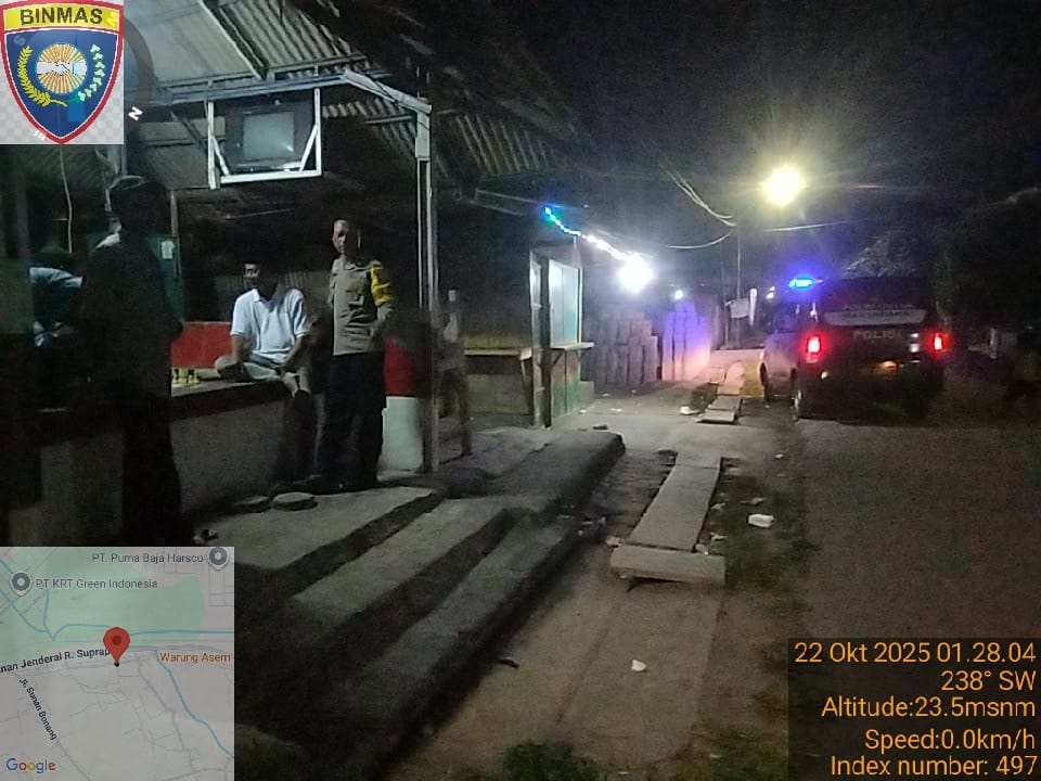 Cilegon - Guna Mencegah Terjadinya Tindak Kejahatan dan Menggiatkan Patroli Pos Ronda Siskamling di Pemukiman warga masyarakat,Personil Polsek Ciwandan Polres Cilegon Polda Banten Mengajak dan memantau pelaksanaan ronda siskamling di lingkungan daerah hukum Polsek Ciwandan, Rabu (22/10/2025).
