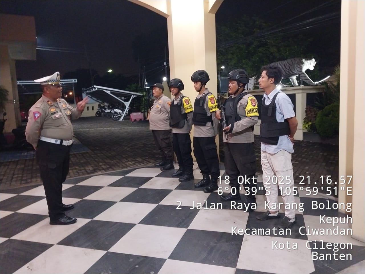Cilegon - Personil Polsek Ciwandan Polres Cilegon Polda Banten menggelar apel malam Persiapan Patroli yang dipimpin Oleh Pawas Polsek Ciwandan IPTU Deni Mulyana, Rabu (22/10/2025).