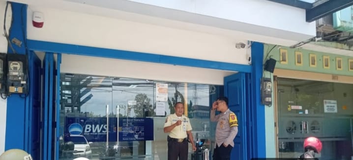 Bhabinkamtibmas Kel. Ramanuju Sapa Satpam perbankan, Sampaikan Himbauan Kamtibmas