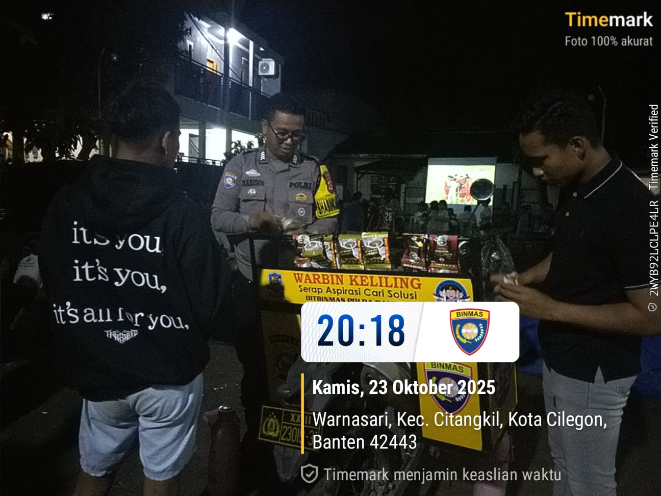 Cilegon - Bhabinkamtibmas Polsek Ciwandan Polres Cilegon Polda Banten, BRIPKA Marisco melaksanakan kegiatan WARBIN (warung Blnhabinkamtibmas) di Lingkungan Binaan,Jum’at (24/10/2025).