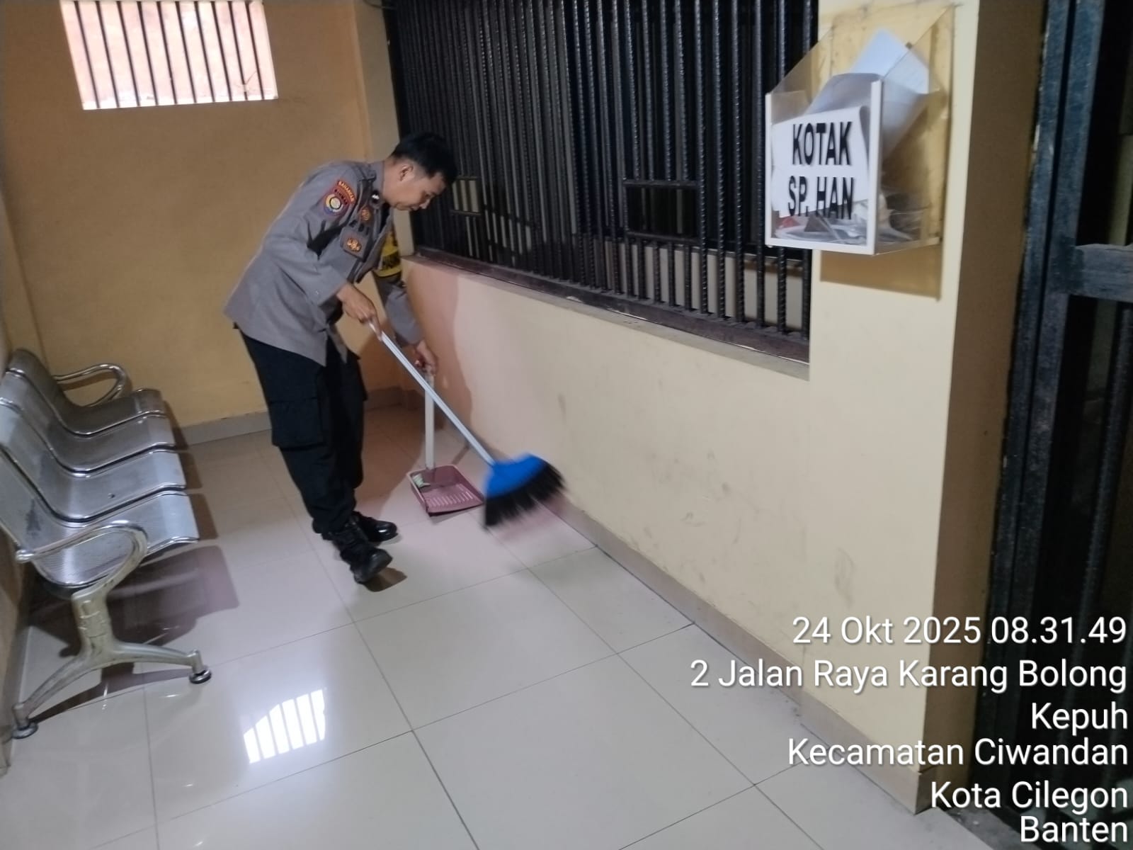 Cilegon – Demi Menjaga Kebersihan Personil Polsek Ciwandan Polres Cilegon Polda Banten Bersama-sama Bersih-bersih lingkungan Markas Komando Dan Ruang Kerja Masing-masing guna menciptakan situasi lingkungan yang sehat dan bersih, Sabtu (25/10/2025).