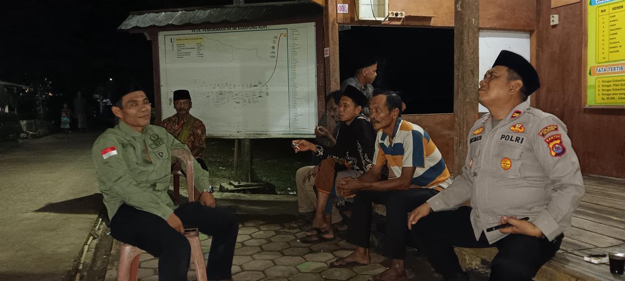 *Polres Cilegon* Kapolsek Cinangka melaksanakan Program Commander Wish Kapolda Banten RONDA SATKAMLING menyampaikan komunikasi dengan Petugas Siskamling agar berperan aktif dalam menciptakan Harkamtibmas yang aman dan Kondusif, Minggu (26/10/2025).