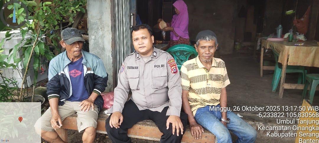 *Polres Cilegon* - Guna Menekan Gangguan Kamtibmas (GKTM) ,Bhabinkamtibmas Polsek Cinangka Polres Cilegon Polda Banten melakukan kegiatan Sambang di daerah hukum Polsek Cinangka, Minggu (26/10/2025).