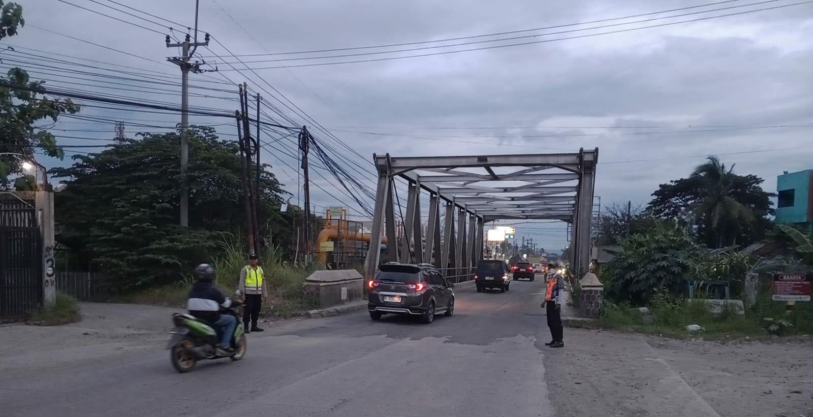 Personel Polsek Bojonegara Bersama Dishub Lakukan Pengamanan dan Pengaturan Lalin Di Persimpangan Jembatan Teratai