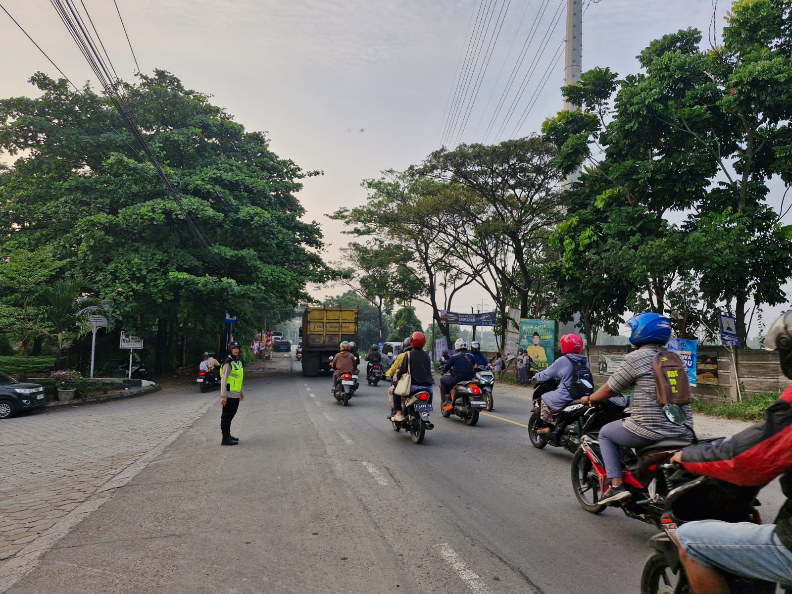 Polres Cilegon, Aipda Emi Prasetyo melaksanakan kegiatan pengaturan arus lalu
