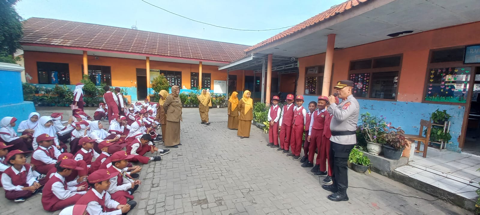 Cilegon – Kapolsek Ciwandan Polres Cilegon Polda Banten KOMPOL Andi Suherman Bersama Bhabinkamtibmas Kelurahan Tegalratu Polsek Ciwandan Polres Cilegon Polda Banten BRIGADIR Dede Abu Menyambangi Sekolah SDN Tegal Kidongdong,Guna Menyampaikan Pesan-pesan Kamtibmas Dan Memberikan Imbauan, Senin (27/10/2025).